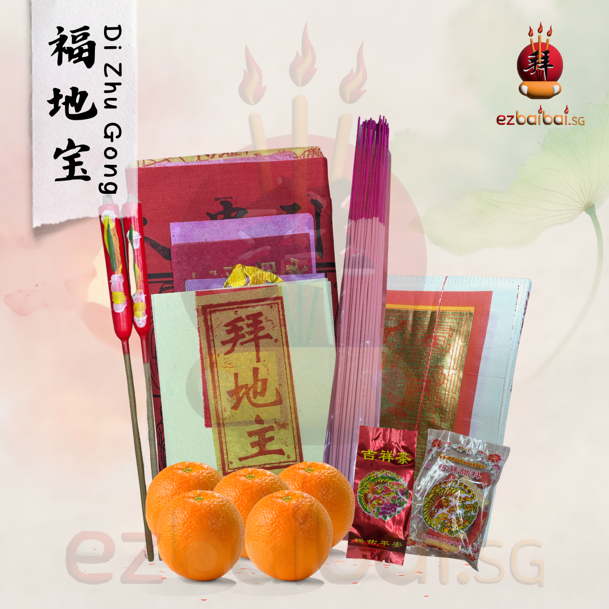 This Di Zu Gong Package Set is specially prepared for offerings to Tu Di Gong (God of the Soil and the Ground) and Di Zang Wang (Ksitigarbha Bodhisattva).