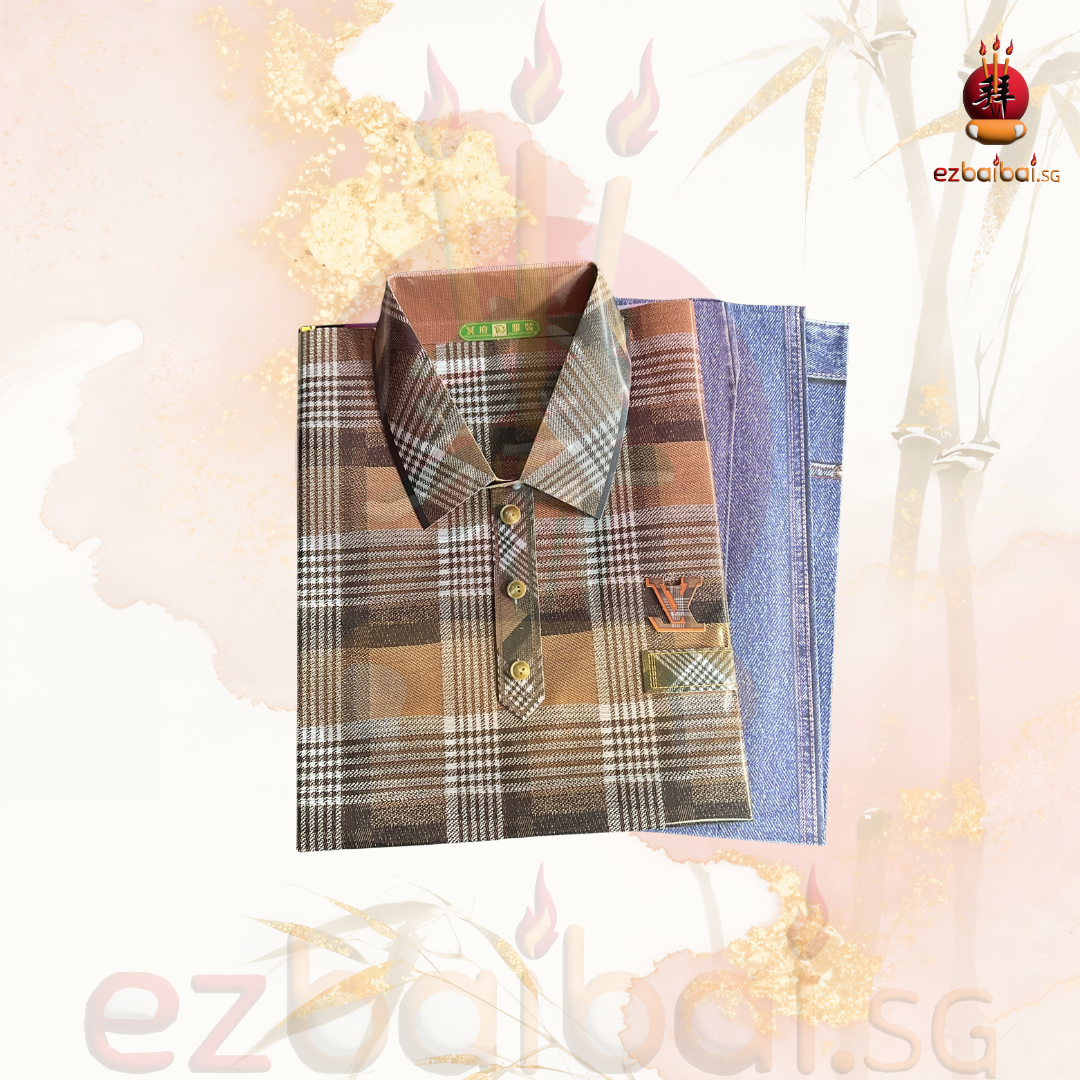 Men's solid color polo shirt is commonly used during traditional prayers and burning offerings.